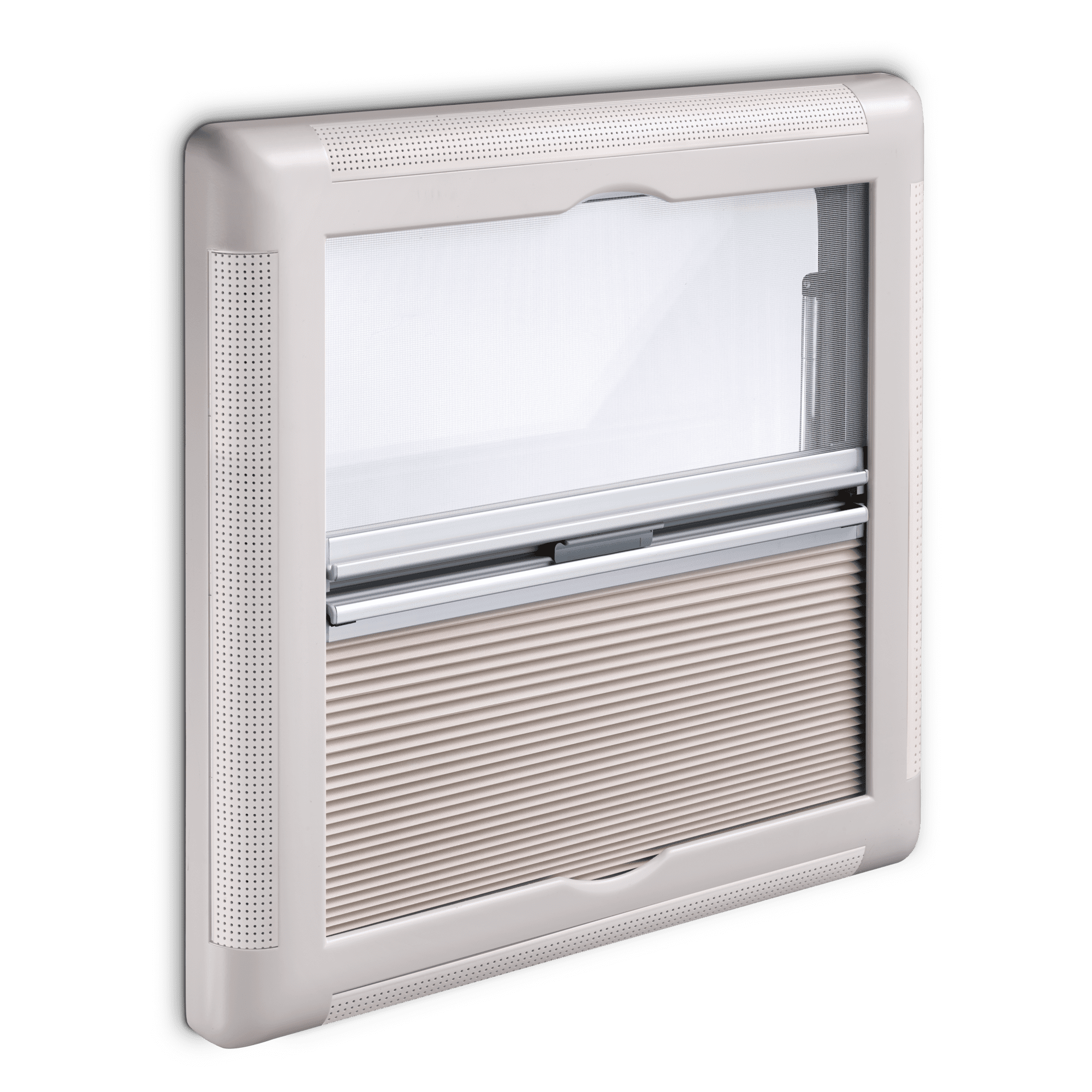 Top-hung hinged window, 500 x 500 mm Looking for a top-quality, attractive window to enhance the side of your motorhome or caravan? This model boasts superb workmanship, materials, and operating convenience.